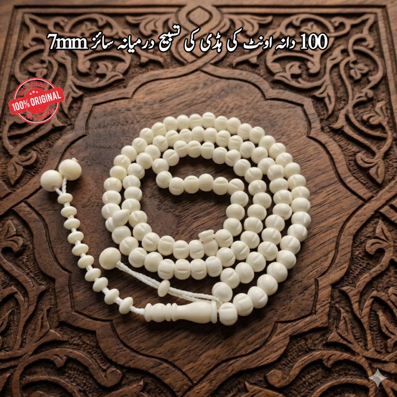 🕌 Camel Bone Tasbeeh – 100 Round Medium Beads